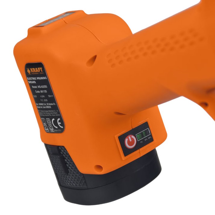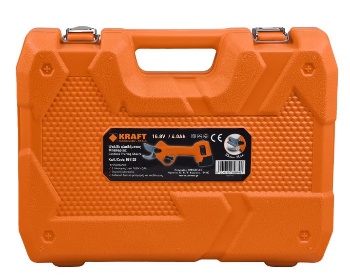 Βαρέως Τύπου Ψαλίδι Κλαδέματος Μπαταρίας με μέγιστη διάμετρο κοπής 35mm, επιλογή Προοδευτικής Κοπής, Προστασια Δακτύλων, ισχυρό επαγωγικό (brushless) μοτέρ 16.8 Volt, 2 Μπαταρίες 4,0Ah και φορτιστή ταυτόχρονης φόρτισης 2 μπαταριών.