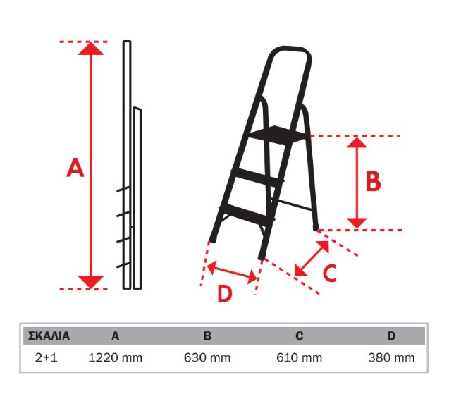 • Σκάλα αλουμινίου με 2 σκαλιά + 1 πλατύσκαλο.