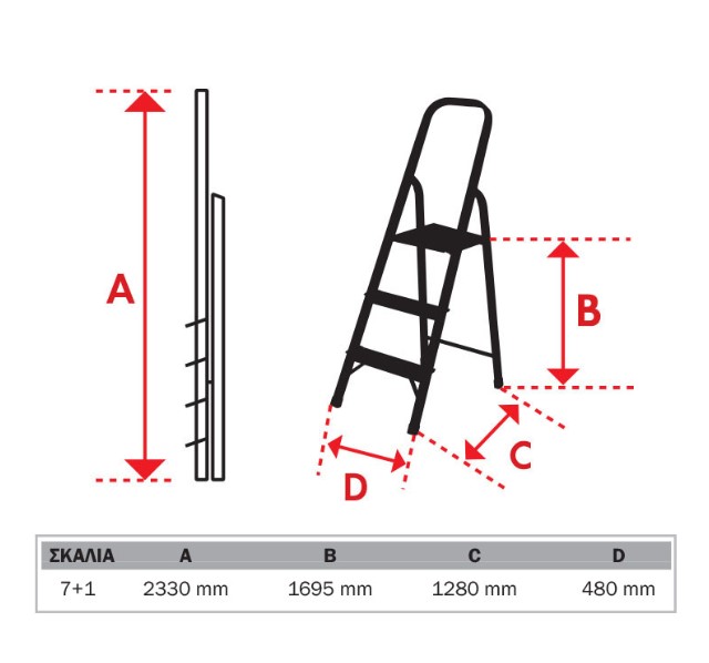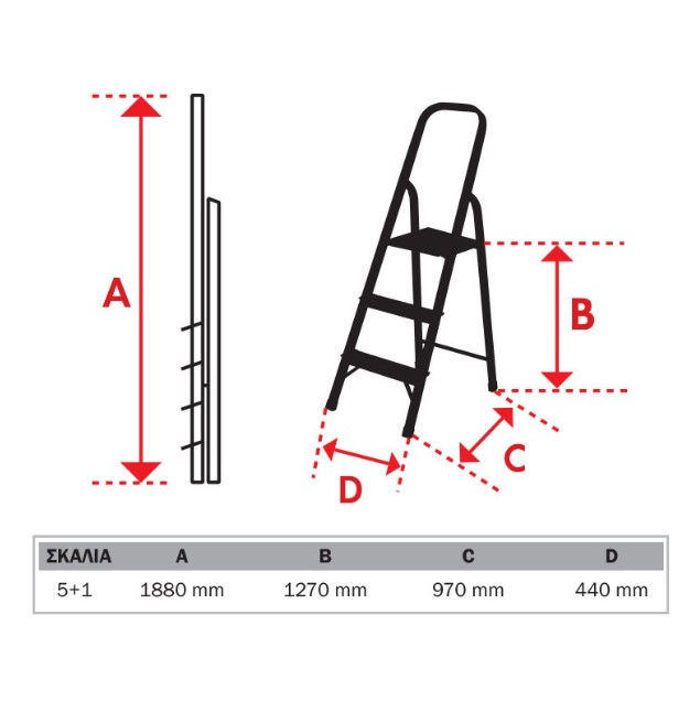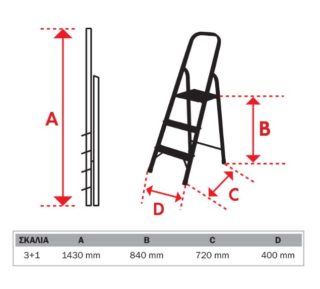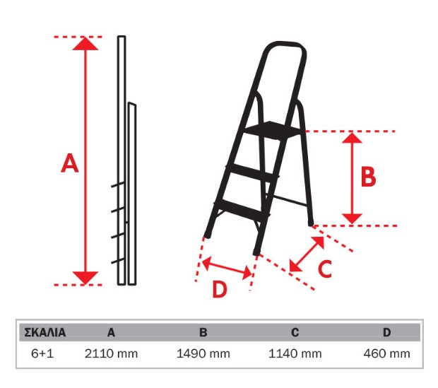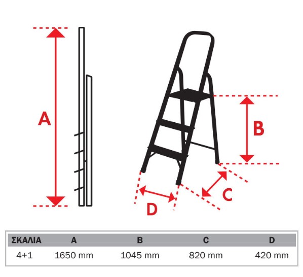 • Μέγιστη αντοχή σκάλας - 150kg βάρος.