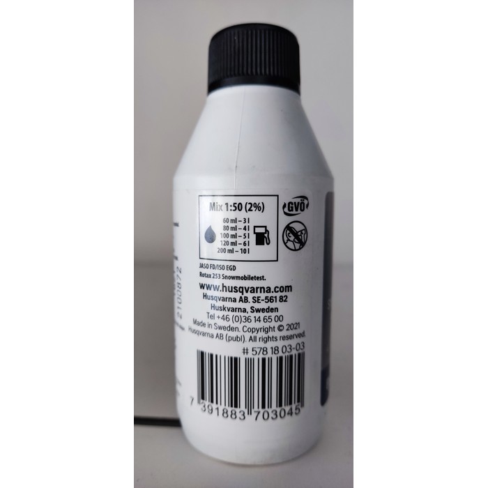 Το καινούργιο λάδι της Husqvarna (64% acc OESD301B) XP Synthetic είναι πλήρως συνθετικό και βιοδιασπώμενο, σχεδιασμένο για σκληρή χρήση με υψηλό φορτίο και υψηλές στροφές κινητήρα. Αναπτύχθηκε με ένα καινούριο προσθετικό ενάντια στη φθορά που δίνει εξαιρετικά καλή λίπανση, χαμηλή εκπομπή καπνού, πιο καθαρό κινητήρα και λιγότερες επικαθήσεις στο έμβολο και στον στροφαλοθάλαμο συγκριτικά με τα ανταγωνιστικά λάδια. Κατάλληλο για όλα τα προϊόντα Husqvarna, ειδικά για κινητήρες με όγκο πάνω απο 55 cm³.